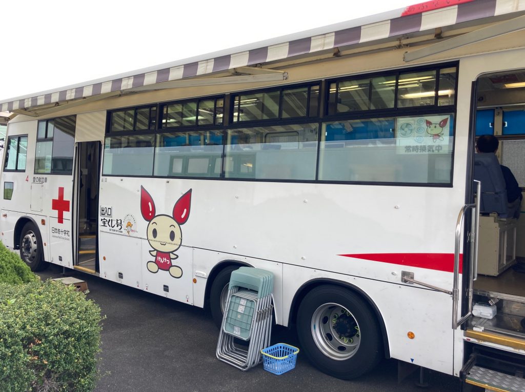 4月21日(水)山口県赤十字血液センターの献血車に来ていただき、18名の社員が参加、12名が献血に協力することができました。